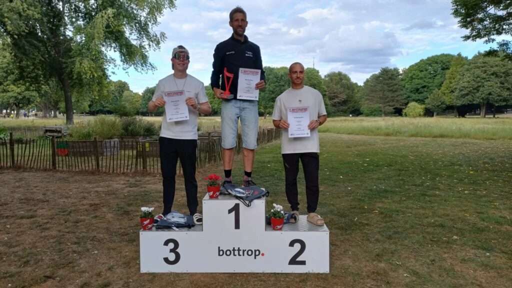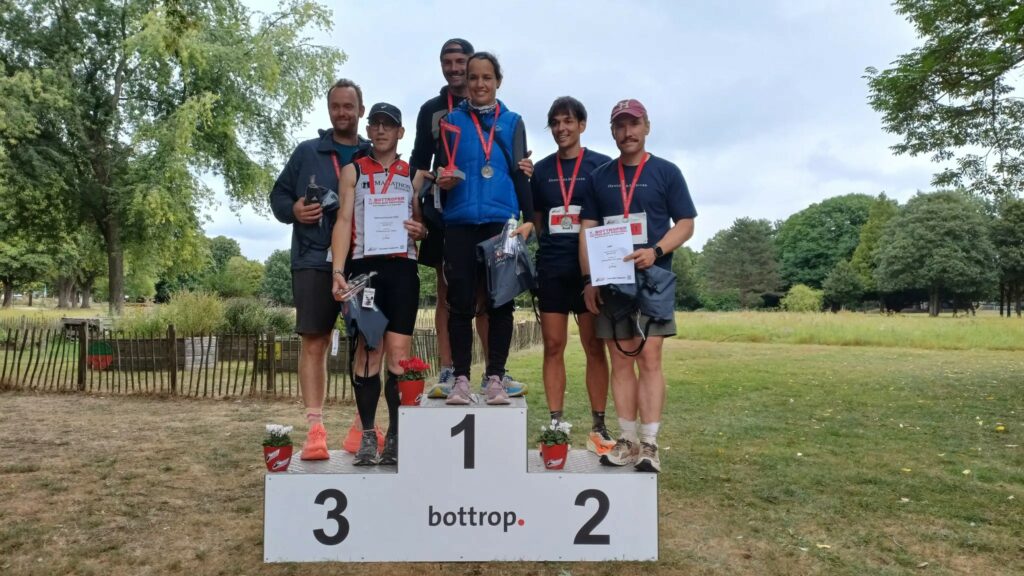 Neben den klassischen Disziplinen feierte der Halden-Backyard 2025 seine Premiere am Bottroper Ultralauf Festival – und entwickelte sich schnell zum Überraschungshighlight. Bei diesem besonderen Format mussten die Läuferinnen und Läufer zu jeder vollen Stunde eine knapp 6,4 Kilometer lange Runde bewältigen, die zum Tetraeder hinauf und damit pro Runde etwa 85 Höhenmeter bot. Wem das Zeitlimit von einer Stunde nicht ausreichte, schied aus – am Ende gab es nur einen Sieger: Matthias Fellner setzte sich in der letzten Runde eindrucksvoll gegen die übrigen Finalisten Michael Irrgang, André Polte und Dirk Stangneth durch – alle vier meisterten 24 Runden!