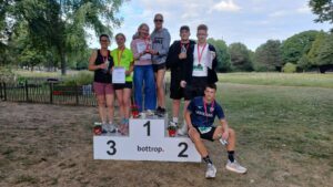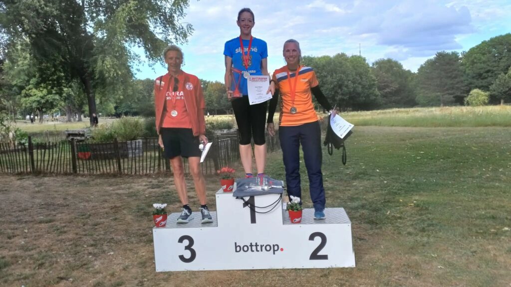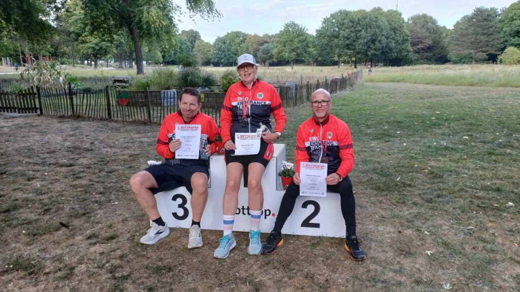Birgit Stolle zeigte über die 7,5 Kilometer eine starke Leistung und sicherte sich mit einer Zeit von 48:55 Minuten den ersten Platz in ihrer Altersklasse. Über die 15 Kilometer lief Kathrin Herzog ebenfalls auf Platz 1 ihrer Altersklasse (1:34:01). Gemeinsam mit Bernhard Drewes, der mit 1:27:01 konkurrenzlos in der Altersklasse M70 gewann, durften sie bei der Siegerehrung den begehrten Läuferpokal entgegennehmen.