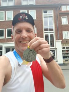 Auch Kevin Schöne feierte sein Marathon-Debüt und erreichte mit einer Zeit von 3:56:29 das Ziel. Sein Ziel, die 4-Stunden-Marke zu knacken, hat er mehr als erfüllt. Auf seine Finisher-Medaille kann er zu Recht stolz sein.